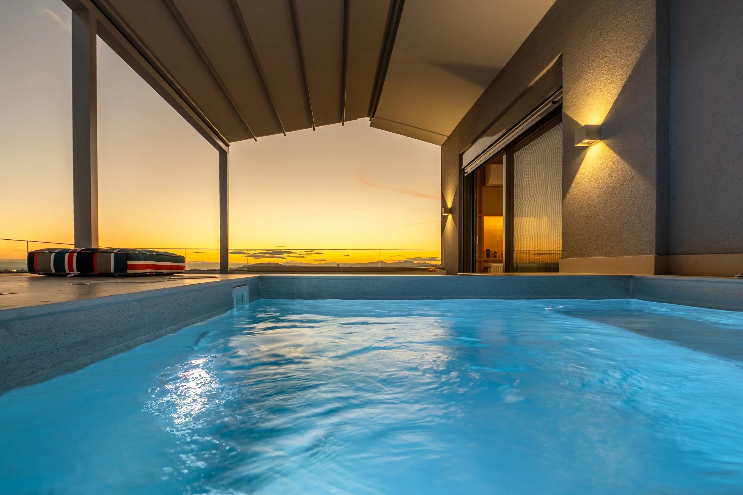 This unique penthouse features a heated rooftop pool with breathtaking 360° views, from the sea to the Acropolis.